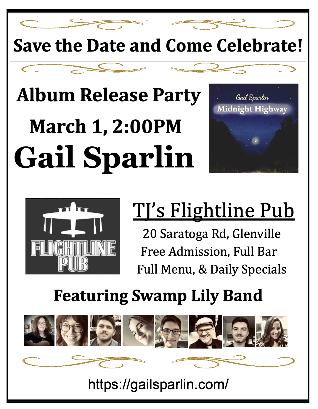 Local Artist Showcase-Double header with Gail Sparlin & Swamp Lily opening, followed by the Amy Ryan Band. Featuring tunes from the new album, “This Holy Place.“